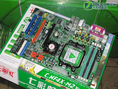 七彩虹NF4X-M2采用传统nforce4-4x芯片设计,能很好的控制成本。提供4个DIMM插槽,方便消费者升级使用。提供2个PCI-E总线显卡插槽,支持SLI。CPU供电模块搭配富士通滤波电容。