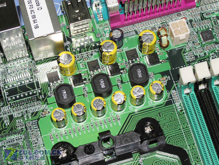 七彩虹NF4X-M2供电模块采用三相供电回路设计,搭配封闭式电感和大量高品质富士通滤波电容。