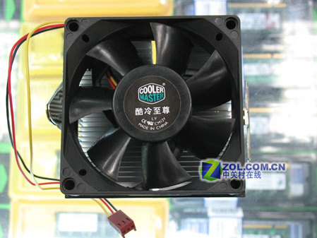 风扇使用酷冷至尊合金轴承,尺寸8cm,转速2700rpm,噪音值为31.5dBA。静音效果稍差,但是散热效果理想,Athlon64 3000+开机5分钟后温度保持在36摄氏度左右。