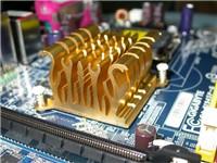 主板能够支持PCI-E 16X接口显卡,2条PCI-E 1X接口和3条标准PCI接口能够满足用户日后的扩展需求。金黄色的散热器覆盖在北桥的上面,通过技嘉精心的制作开起来非常的有立体感,散热更是不成问题。