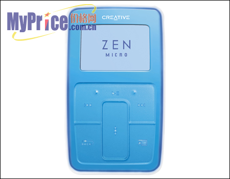 Zen Micro外形尺寸约51×19×84mm,重量108g左右(含电池)。机身圆滑可爱,机身背部为晶莹的白色,呈小许弧度拱起,拿在手中与掌心有着良好的契合度。背部采用两层材质造成,里面一层是纯白色的树脂合成材质,外面为透明的塑料作保护,手感十分顺滑,质感相当好。这款产品一共有十种颜色可以供消费者选择,其中有深蓝色和淡蓝色两种色彩都是清凉。