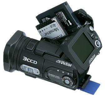 带有世界体积最小的3CCD硬盘式DV的JVC MC500是一款很有实力的产品,体积仅为118*80*55mm,重量为330克,MC500具有黑色的机身设计,专业感很强。机身背部有一块1.8英寸、13万像素的液晶显示屏,最大的特点就是采用旋转式机身设计,即镜头部分和手持部分相互独立,并可以上下旋转45度,这无疑将会让使用者在拍摄时更加方便在镜头方面,这款MC500采用了一颗JVC 10X光学变焦的镜头,镜头的焦距为3.2mm-32mm,换算成35mm相机焦距为46.2mm-432mm,而在拍摄静态图片时也可以达到34.6mm-346mm的焦距段。镜头的最大光圈可以达到F1.8,在最大程度上保证了弱光条件下的拍摄。由于定位在专业用户,为了保证用户拍摄的成功率,JVC还为这款产品配备了手动对焦环,可以让用户在弱光条件下进行手动对焦操作。