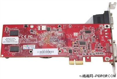 看得出来,这款PCI-E X1接口的显卡并没有强调3D性能有多强大,因为它的接口带宽和显存位宽都非常有限!但是它却有自己独特的地方,那就是可以轻松组建多头输出——显然主板上的PCI-E X1接口要比PCI-E X16多很多!