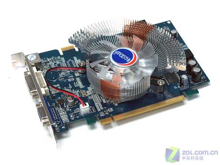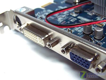 显卡使用了来自著名散热器厂商超频三的铜铝结合的风扇,放射状的散热片扩展了散热面积,不仅能有效控制高频下显卡的发热量,还照顾到了外围显存和供电模块的散热。显卡采用了大众化的DVI+D-Sub+S-Video的三接口设计。