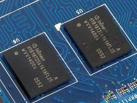显卡搭载了8颗16MB*16Bit规格的英飞凌2.5ns DDR2显存,构成了256MB/128Bit的显存规格,显卡默认出厂规格400MHz/800MHz,频率相对保守。显卡支持SLI技术,提供了相应的接口。