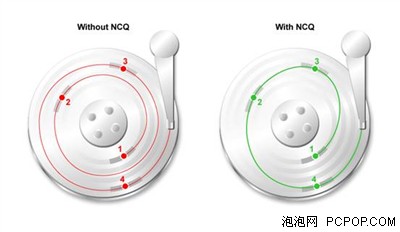 NCQ技术是一项对硬盘的指令执行顺序进行优化的技术,以往的硬盘,会按照接收指令的先后顺序死板的移动磁头搜寻数据,然而NCQ的功能却是在接收到系统传送来的读取命令后,对将要访问的地址进行排序,排序后硬盘的磁头将会以更加高的效率进行寻址,从而避免了磁头来回移动的时间损耗,延长硬盘寿命。