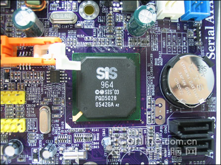 SiS964南桥芯片,提供了大部分主流的应用支持。提供1G南北桥带宽,同时亦整合8个USB 2.0/1.1控制器,两个Serial-ATA150 以及两个Parallel ATA133/100/66标准双IDE信道。
