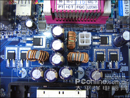 主板的供电电路还算扎实,稳定运行应当没有问题,要超频就马马虎虎了。此外电路板上还有元件的空焊位。