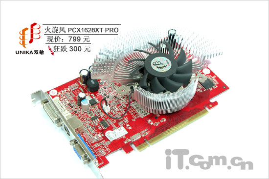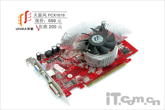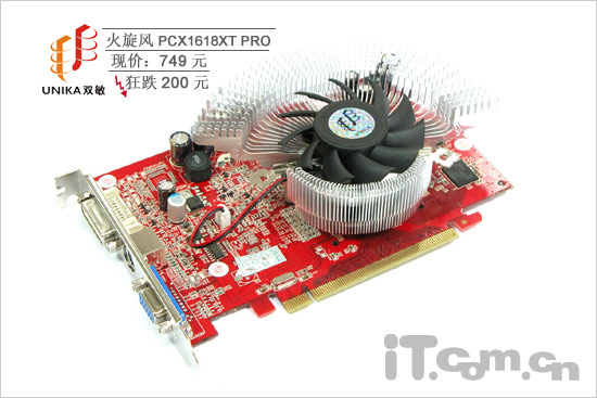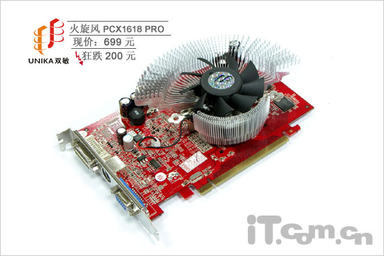 另一款降价的火旋风PCX1618XT PRO则仅在显存容量上有所差别,和火旋风PCX1628XT PRO相比,该卡具有相同的特性,配备的是128M的显存容量!由于使用了新的0.09微米制程,显卡的核心/显存频率并没有达到极限,而且飞酷散热器的有效散热使卡达到更高的频率完全有可能,该卡价格也从949直接杀到749元,跌幅度为200,更适用于显存要求相对不太苛刻的用户!