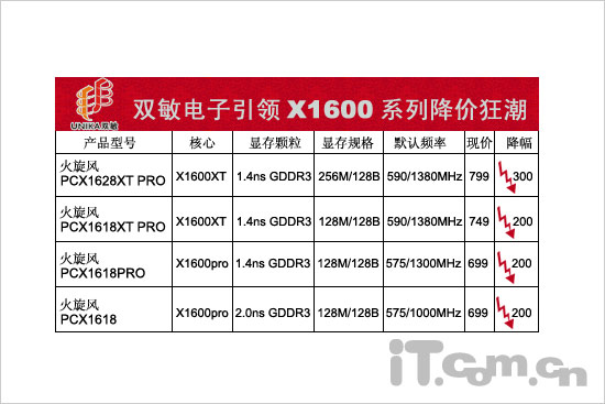 中端市场历来争纷都最为激烈,就目前市场中的芯片来看,12管线无疑是中端的强势载体,而NV的GF7600系列凭借强劲的性能在中端市场几近形成垄断的局面,而此次双敏电子一鸣惊人,799元的256MX1600XT一举冲破X1600XT的价格壁垒,同时其他三款X1600PRO/XT也均有200元的降幅!