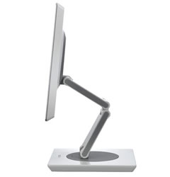 三星 970P的支架设计已经突破了前作193P,970P在颈部增加了一个转轴,而且970P的底座也是可以旋转的。970P可以在-5~150度之间进行调整,而屏幕也可以进行-90~90度的调节,可变幅度则为134mm。同时,970P在屏幕旋转时,液晶显示器内的传感器会通过DDC/CI发送信号到电脑上,通过安装对应软件MagicRotation,自动地转画面的表示内容。转弯角度最大为180度。当然,显卡必须要支持DDC/CI功能。