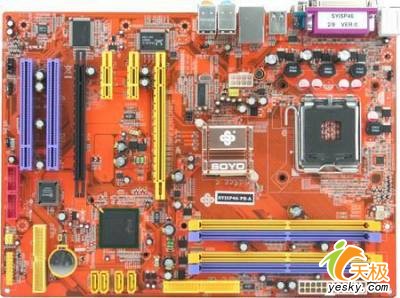 梅捷这款I5P46采用了标准的946PL+ICH7芯片组,支持Conroe、Prescott、Cedar Mill、Smithfield、Presler核心的CPU,支持1066/800/533MHz的前端总线。四相供电设计可以保证处理器的正常运行。扩展方面,主板板载了四根DIMM插槽,支持DDR2 800/667/533,最高支持4GB的双通道内存。显卡方面,主板提供了双PCIE X16插槽,虽然说Intel明确表明946与965并不支持SLI,但厂商也可能通过自己的修改达到支持双卡的效果。