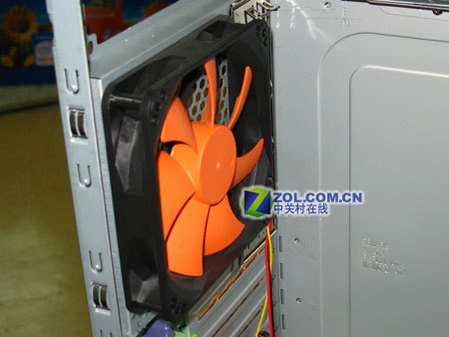 散热系统设计合理,前面板底下还隐藏了一个12cm炫光机箱风扇,前后搭配营造更好的风道。一个12cm大口径机箱风扇,用作机箱后部散热。侧板上按照38度机箱标准安装了CPU导风道,可以根据CPU风扇高度调节长度,更好地帮助CPU散热。