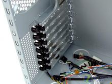 烽火战神534黑版机箱内部采用了散热性能优越的中型塔式设计,机箱钢板全部采用进口0.8mm SECC优质镀锌板材,箱体坚固。烽火战神534黑版提供了5个5.25英寸位、4个3.5英寸位,可以满足大多数用户的扩展需求,还有7个PCI扩展插槽,适合大小各种板型,并且过展位全部采用了面工具拆装设计。