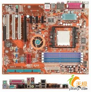 主板采用了三相电源回路设计,采用小巧的固态电容及KZG的电解电容,MOSET管部分还附上华硕高端主板常见的银色散热片。但是比较遗憾的是,该主板采用旧的DDR内存规格,板上配置两条DDR400内存插槽,可支持2Gb容量。
