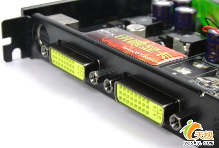 显存方面,讯景6800XT AGP显卡采用的是128M 128Bit GDDR3 2.0ns显存颗粒,默认的核心和显存频率分别为350/1000MHz。在接口的设计上,其采用了高端主流的双DVI+HDTV接口设计,充分满足游戏的玩家的使用需求。
