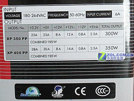 该款电源额定功率300W,峰值功率达到了350W,从其铭牌上能看出该电源应该符合ATX 2.0的电源标准,双路12V输出更适合配置时下流行双核、双显卡电脑使用。并且有两个SATA接口,能为多硬盘用户提供更强大的动力。输入电压范围为180-264V,输入幅度,可以在电源不稳定的地区正常的使用。