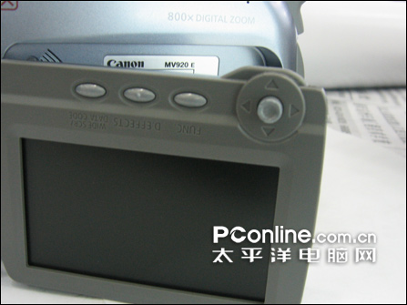 MV920采用了一块2.7英寸宽屏,可提供16:9及4:3两种显示,液晶屏旁边还特别设置了一个五向导航键,操作更为方便。为了配合取景,MV920还另外设置了一个0.3英寸EVF电子取景器。