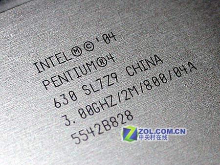 Pentium 4 630顶盖上标注了INTEL品牌,Pentium 4 630型号,SL7Z9编号,CHINA(中国)产地,以及频率/L2级缓存容量/前端总线等信息。