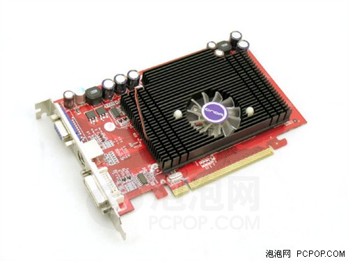 这款X1300PRO狂飚版采用红色PCB板,清洗工艺相当的不错,显卡的走线布局都非常地不错,供电电路被安排在显卡的上方,这样的设计更有利于散热,显卡工作也更加稳定。 显卡采用了三星2.0ns DDR3颗粒,组成128MB/128bit的显存规格。核心频率和显存频率分别为600/1000MHz,比公版的X1300PRO的显存频率高出200MHz。显卡的供电系统做得也非常的豪华,采用日系的红宝石电容,密闭式电感有效地屏蔽了电磁波的辐射,显卡也会更加稳定地运行。散热部分采用大的铝制散热片,配备低速的风扇,不但散热性能高,而且噪音非常地小。输出采用VGA+TV-OUT+DVI全接口的输出方式,同时显卡还支持AVIVO技术。