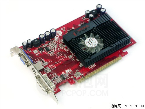 国内知名显卡厂商双敏推出的一款火旋风PCX1318 Pro显卡,继承了双敏一贯的风格,深红色的PCB走线清晰,做工精良,采用了X1300Pro核心。搭配了三星2.0ns GDDR3显存颗粒,正面四颗组成了128MB/128Bit的规格,默认频率为1GHz。采用了核心/显存分离式供电模块,并统一使用了日系红宝石MBZ电容和密封电感,保证了显卡在高频下的稳定工作。其最大的特点是拥有HyperMemory 2技术,能够将显存扩充至512MB。当初的主流产品现在已经打到了入门级的价位。