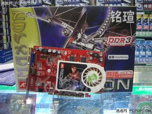 这款狂镭X1600PRO钻石版HM采用非公版PCB设计,同样搭载了强劲的RV530核心,内建12条像素管线及5个顶点单元,支持DirectX 9.0c、SM3.0、HDR+AA效果以及Hyper Memory技术。显存搭配三星2ns DDR3显存颗粒,构成128MB/128bit的显存规格,默认频率575/1000HMz。