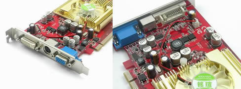 散热设计采用了精致铝鳍散热装置,鳍片采用了导热良好的铝制材料,鳍片采用了多角度开放式设计,高效磁悬浮风扇提供了足够风量将热量从风道带走,大幅度超频无任何问题。输出方面提供了完整的TV-OUT、DVI、VGA输出接口,方便不同的显示输出,还可组建家庭AVIVO影音平台。