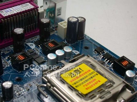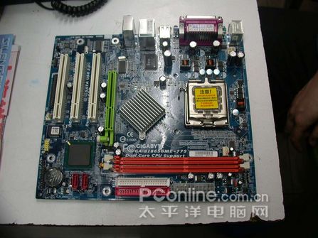 这块主板仍然延用了技嘉蓝色的风格,做工严谨、精细。它采用Intel 865G+ICH5的经典北南桥组合,支持INTEL LGA775架构全系列处理器,包括双核奔腾D系列,支持HT超线程技术。最高支持支持800MHz系统前端总线,它内建高性能的Intel Extreme Graphics Engine 2图形核心,支持双通道DDR400内存以及SATA接口。