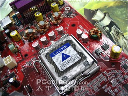 CPU供电电路采用了增强行4相供电,全部采用富士通的固态电容设计,使主板在处理器全速工作下的稳定性得到了保证。
