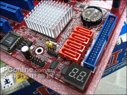 ICH7南桥提供了4个SATA2和1个IDE接口,能够支持8个高速USB2.0设备,旁边还提供了一个Debug灯,能够直观的反应出硬件的故障。