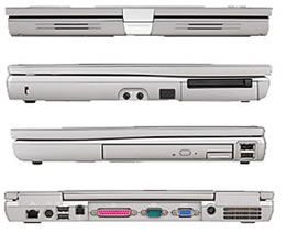 在接口方面,Latitude D610配备了4个USB 2.0端口, 1个9针连接口,1个25孔连接口,1个15孔连接口和S-video视频输出连接口, 1个兼容IrDA标准1.1(快速IR)和1.0(低速IR)端口。