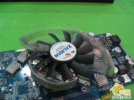 韩国思民ZALMAN散热器采用发散式的稽片状散热片设计,铝制材料为主,同时配以大扇叶的风扇,11枚扇叶的运转不仅保证了产品的日常散热,也照顾了用户渴望安静环境的特点,噪音控制得非常得当,即便是高速运转也不会影响到用户的工作。供电单元集中于尾部,电容以日系三洋SVP固态颗粒规格主打,拥有较长的使用周期,并有良好的稳压效应。同时,电路辅以多枚高品质全封闭式电感线圈,安全系数方面,也提升不少。