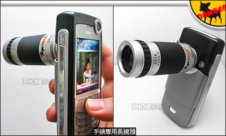 价格仅 19 美金的手机望远镜套件,由一支大炮望远镜及一片上有镜头接合孔的电池盖组成,目前支持 Nokia 许多拍照手机,包括 6630、6680、6230、6230i、6600 及 7610。