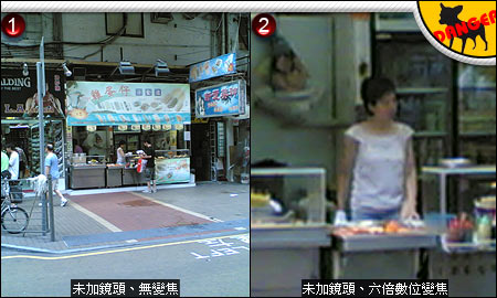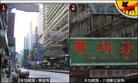 2. 开启手机的六倍数位变焦,确实能把招牌拉近,但影像松散模糊,根本看不清楚。