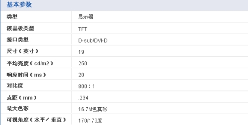 编辑观点:戴尔液晶最突出的特点就是性能强劲,外观工业设计以人为本,再加上超值的戴尔直销售价,推出了不少优秀的产品。此款1905FP也是其中的一款。DELL 1905FP的支架设计非常有独到之处,可以非常方便的调节最佳视角、高低以及旋转液晶屏幕。从外观上看这款显示器采用的支架拆装更方便,更易于使用。戴尔液晶出色的人性化工业设计,在1905FP上得到了完美诠释。可升降可旋转支架、镂空底座、配备USB接口,都在最大限度上满足了用户的需求。采用三星PVA广视角16.7M色面板,拥有800:1高度对比度又使其在色彩表现上表现上乘。不过20ms响应时间已经明显有些过时。