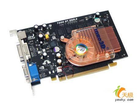 点评:采用P456公版设计,并配备了1.2ns GDDR3显存颗粒,超频潜力强大,属于当前此级别规格最高的7300GT之一。