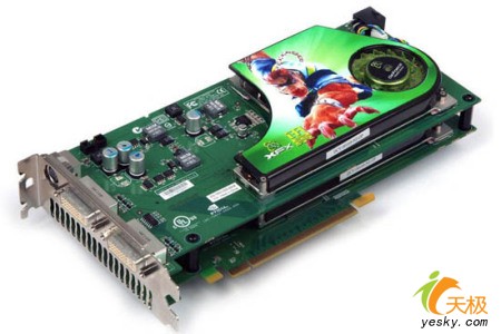 产品述评:XFX是NVIDIA官方核心合作伙伴,本次XFX推出了GeForce 7950GX2超频版,其频率高达570/1400MHz,与普通公版GeForce 7950GX2的500/1200MHz高出不少,所以价格亦飙升到19999元。这款产品对于经济绝对富裕的用户来说,是一个不错的选择,呵呵,篡改一句经典电影台词,什么是成功人士,成功人士就是买什么全买最贵的,还买最好的