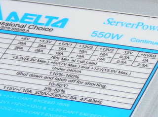 面对市面上其它产品五花百门的设计,Delta的电源供应器产品却仍旧只注重产品质素,没有华丽的外观的ServerPower 550W,主要针对工业用及服务器市场,并以严格的QC及耐用度作卖点。