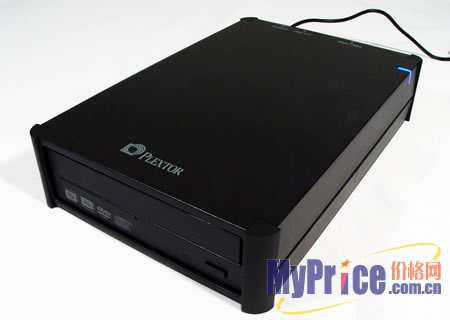 PX-740UF的外观呈纯黑色,前面版样式非常朴素,造型趋于传统,只印有DVD论坛和DVD联盟的标记起到一点装饰作用。从产品造型上看,这款DVD刻录机并没有专门针对竖直放置进行特殊设计。