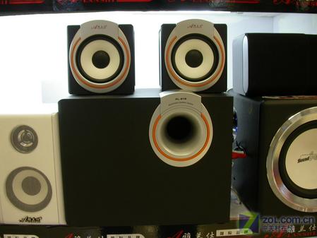 雅兰仕AL-912与它以往的产品比较,风格有所不同,更趋于时尚和个性。它以黑色为主调,采用全木质的箱体(包括卫星箱),倒相孔处采用银灰色注塑圈装饰,还有一个橙色的装饰线,这使得整机多了一分灵动的色彩。