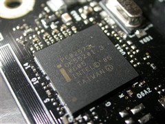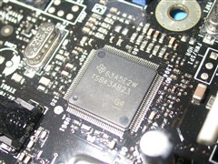 供电部分使用了富士通的固态电容。板载第三方磁盘控制芯片,音频方面带有光纤和同轴两种数字接口。