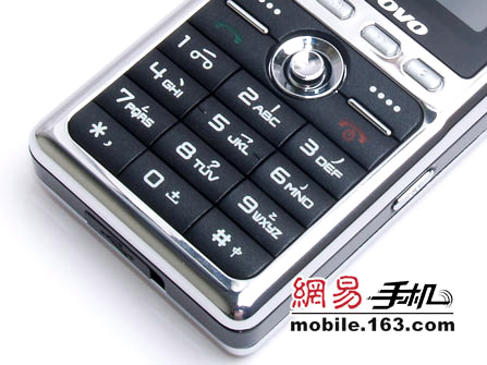 键盘区域采用整体式设计,数字键与功能键连成一片,键粒面积比较宽,中间还微微有点凸起,很贴合指尖,而且磨沙材质的面料手感非常突出,加上良好的回馈,操作起来得心应手。镀铬的五向摇杆看起来很精致,但是面积偏小,男士们操作起来有点拘谨。在屏幕下方P706还特意安置了一组多媒体控制键,看来P706除了定位商务人士以外,还面向众多追求时尚的年轻用户。