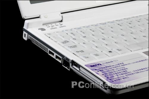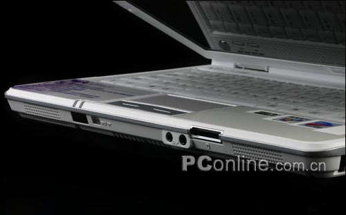 在接口的布局上,S53并不能做到齐备,这自然归因于其较为纤细的身材。在有限的侧面空间,只能最大限度的精简接口,因而只保留了目前较为常用的端口,以满足现代商务休闲之需。由于后侧空间被电池所占用,S53的主要接口集中在笔记本左侧。两个USB2.0、1394接口和PCMCIA TypeII十分紧凑,完全利用了左侧边空间。接口间的间隙恰到好处,不会出现空间缘故而同时使用的情况。