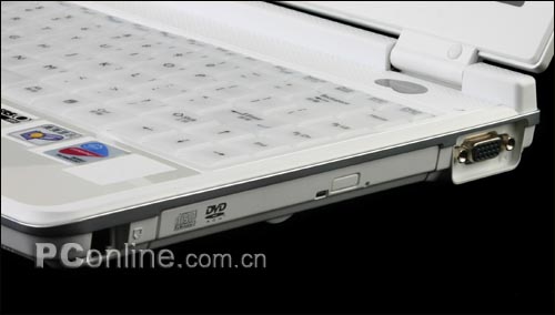 RJ45和RJ11左右各居一方,右侧大部分空间被光驱所占居,同时在右边还提供了VGA接口以备外接使用。