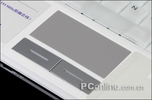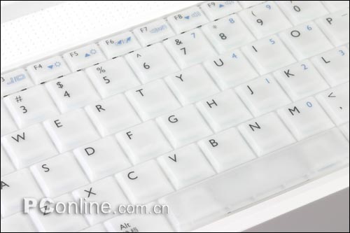 这款笔记本的键盘采用的是白色半透明标准键盘,使用的手感相当不错。兼具美关与质感,让使用者充分享受到弹指间的快感。在长时间的测试使用过程中,键盘区域的温度提升并不明显。两边的掌托位置处的热量分配较为均匀,使用相当舒适的,并不会因为左下方的硬盘位置而导致左右热量较大差异。不过值得注意的是,由于采用白色基调,哪怕有少许的污垢都回毕露无遗。使用的时候保持键盘与掌托的清洁显得十分必要。