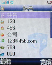 在电话本方面,联想V800仅300条的存储能力显得非常保守,对于联系人较多的用户可能会出现不够用的情况。不过在每个联系人下,可以添加的选项还是很多的,包括手机号码、家庭电话、单位电话、传真、邮箱、公司名称、生日等;并且可以选择来电大头贴、来电铃声和来电影片连接。