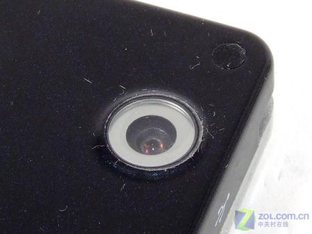 背面则是采用黑色工程塑料面板。在右上角不起眼的位置安置了一个摄像头,摄像头的位置如此之偏,这在随身数码产品中并不多见,想来也是受了产品体积的限制。四角各有一枚圆形橡胶垫,这是为了防止划伤而设计的,但笔者认为由于其并没有凸出背面面板多少,因此防磨损的效果如何还有待验证。
