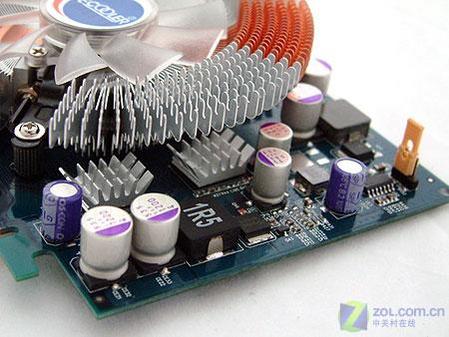 影驰7600GE骨灰玩家版显卡采用了自主研发的6层PCB,默认频率为500/1400MHz,刷BIOS后可达560/1400MHz,性能要大幅度领先于公版7600GS。供电部分,影驰7600GE骨灰玩家版用料相当豪华,采用了大量三洋SVP固态贴片电容,用料明显好于同类产品。