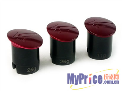 G-Weight---"互换模组重量系统"。中间的红色F徽章并非仅仅是为了美观,那是一个可更换的配重模块,一共是3个重量分别为3.5G、11G和26G。用户可根据自己的使用习惯,利用G-Weight™技术在鼠标顶部装载并固定配重模块,更换十分便捷。