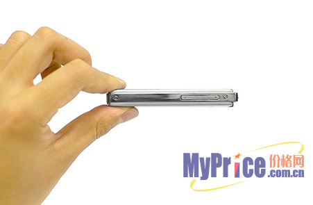 三星YP-Z5F的机身整体形状为规则的长方体设计,四周边角均做了弧度处理,体现出了柔美的感觉,其外观尺寸为:42.2mm×89.8mm×11.4mm,机身重量为:56g。从数据我们不难看出,不仅机身非常轻薄,而且携带起来也非常的方便。主体正反面均被银色的铝制材质所包裹,手感非常细腻,不容易留下指纹。